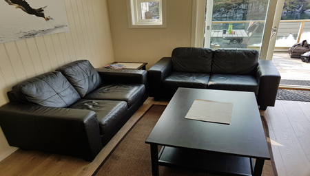 Die Seehäuser liegen direkt am Kai - mit toller Aussicht auf die Schärenlandschaft! Bei der Planung dieser schönen Domizile wurde an alles gedacht. Im UG der Häuser haben Sie einen Filetierplatz und eine kleine Sitzecke sowie einen Raum für Angelequipment mit Tiefkühltruhe und einen Trockenraum. Den eigentlichen Wohnbereich, der sich auf 2 Ebenen erstreckt, erreichen Sie über die Außentreppe. Wohnzimmer mit möblierter Terrasse, Couchecke, Fußbodenheizung im EG, SAT-TV (Astra), Essecke. Moderne Studioküche komplett ausgestattet mit Spülmaschine, Mikrowelle, 4-Platten-Induktionsherd, Backofen, Dunstabzug, Kaffeemaschine, Kühl-/Gefrierkombination, Toaster, Wasserkocher. Bad mit Dusche, WC, Waschbecken, Waschmaschine, Fußbodenheizung. 1 SZ mit 2 Einzelbetten (mit Sicht auf den Hinterhof), 1 SZ mit 2 Einzelbetten (mit Panoramafenster zum Fjord).